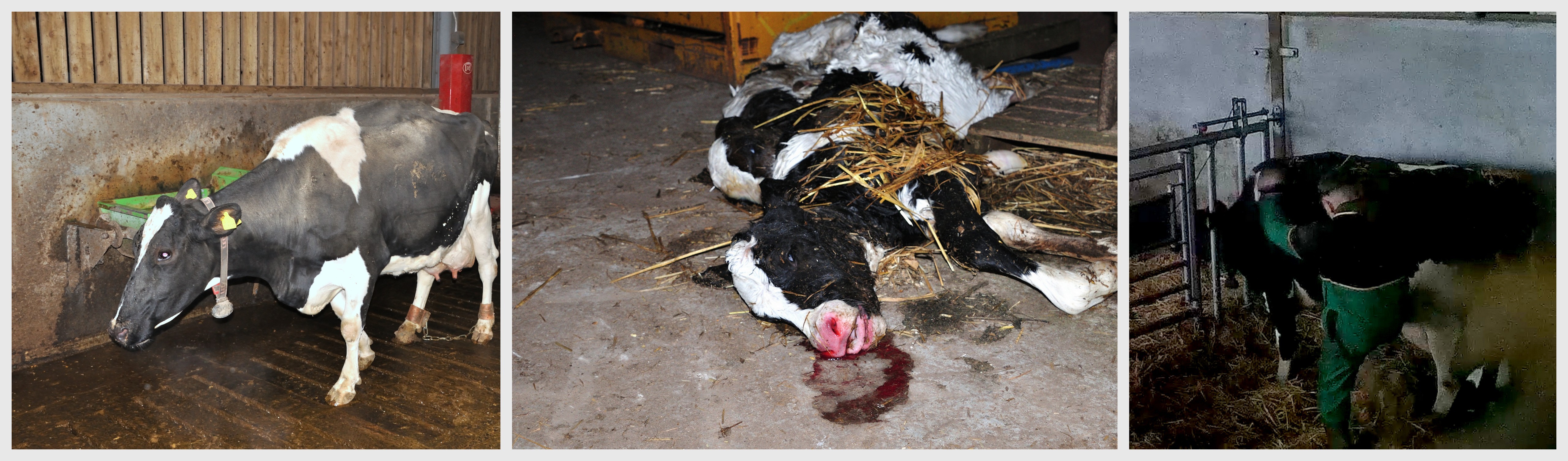 Kühe, die erst vor Kurzem entbunden haben, werden wiederholt geschlagen und getreten.
